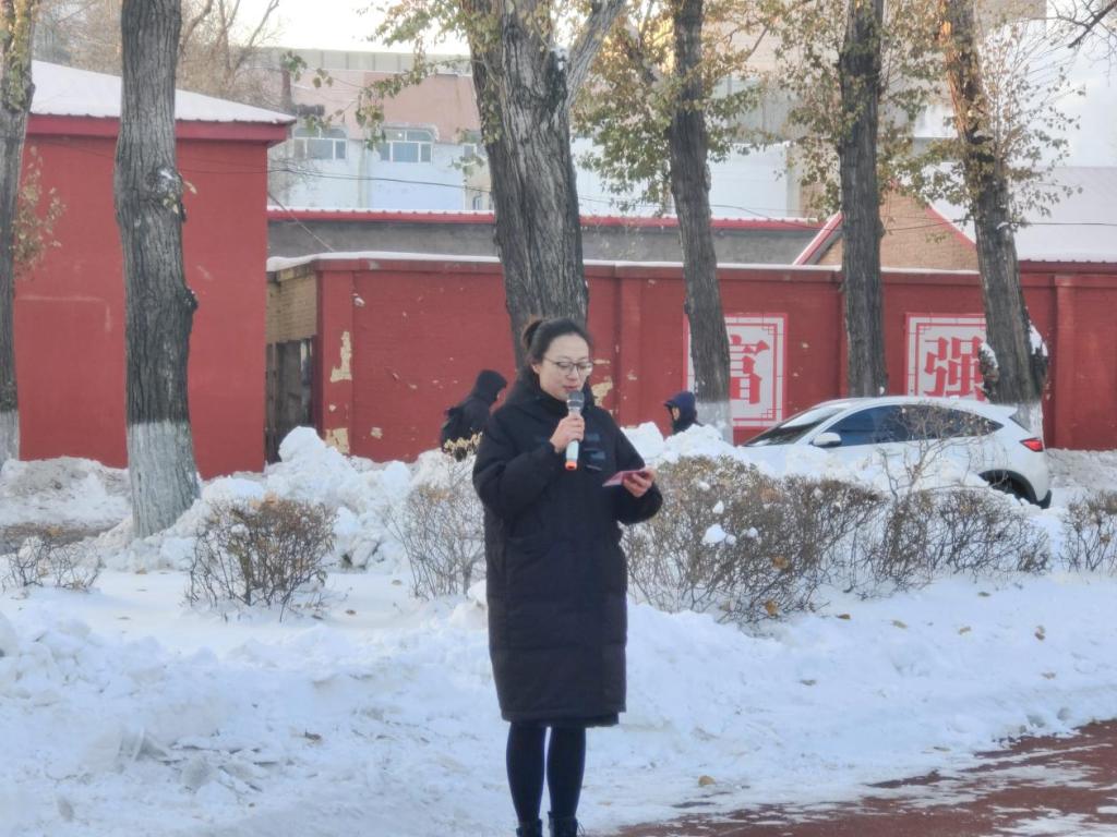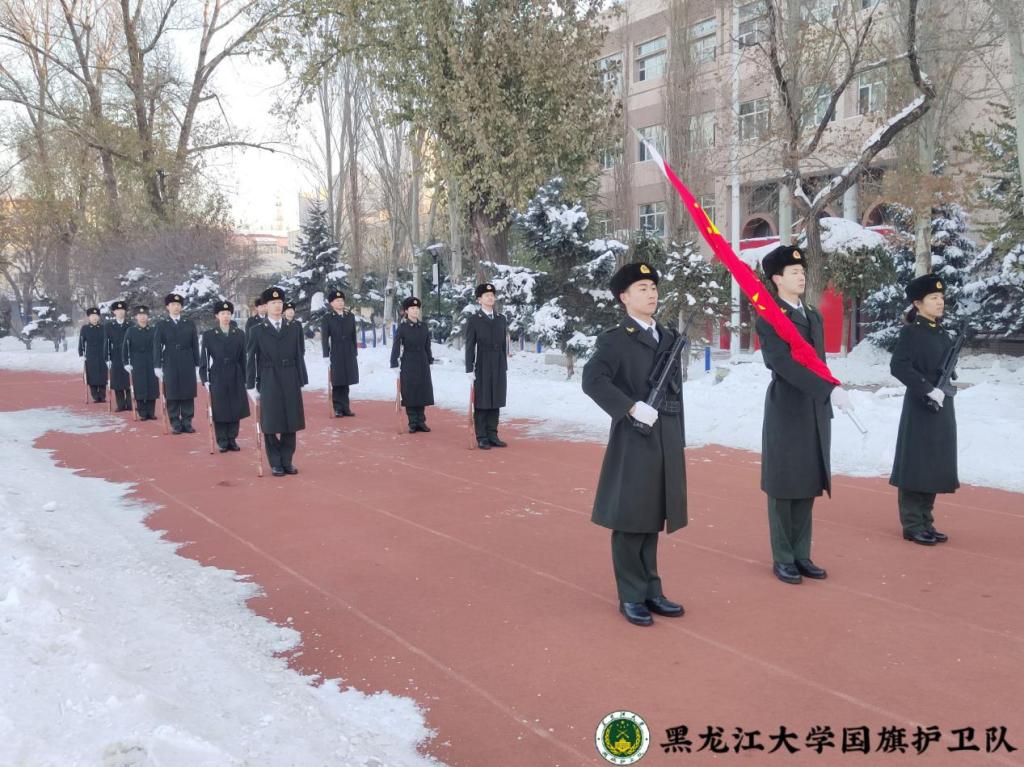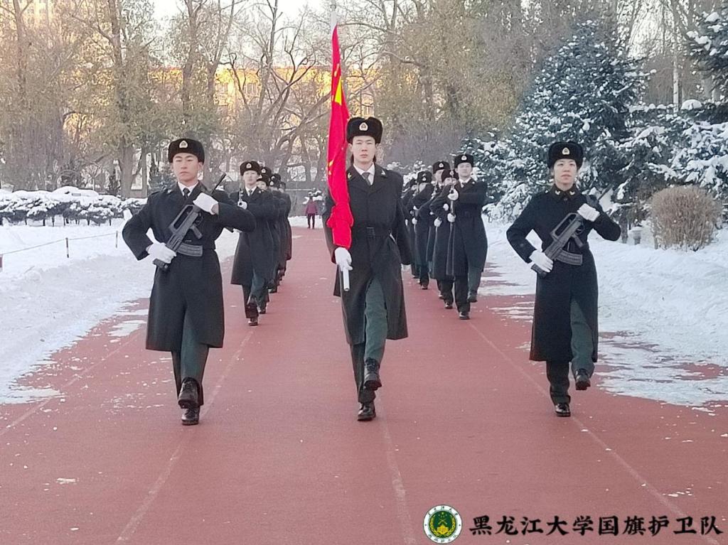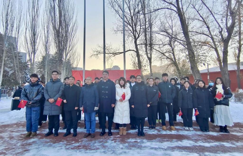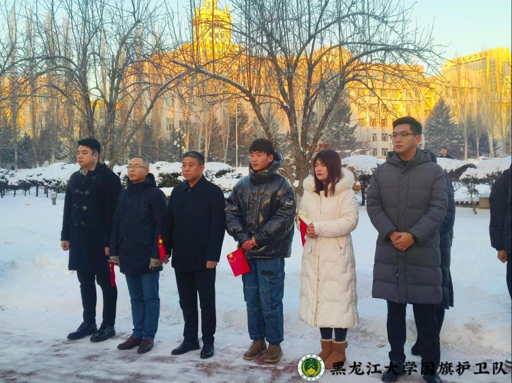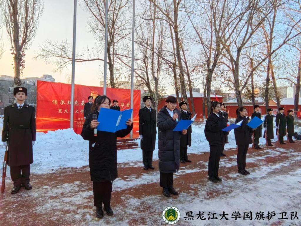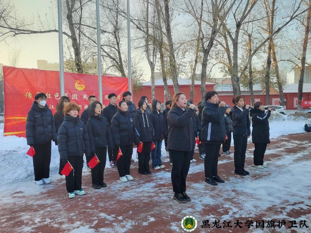 仪式上,数学科学学院学生代表首先进行国旗下朗诵《使命如磐,行远自迩》,用真挚的情感呼吁同学们在新时代勇担时代重任,肩负时代使命。坚定的声音中,传达着青年一代树立远大理想,勇担历史使命的决心,诠释着红色基因融入血脉的力量。随后,全体师生共同合唱《我和我的祖国》,深情的歌声彰显着黑大青年对祖国的热爱和蓬勃的青春力量。