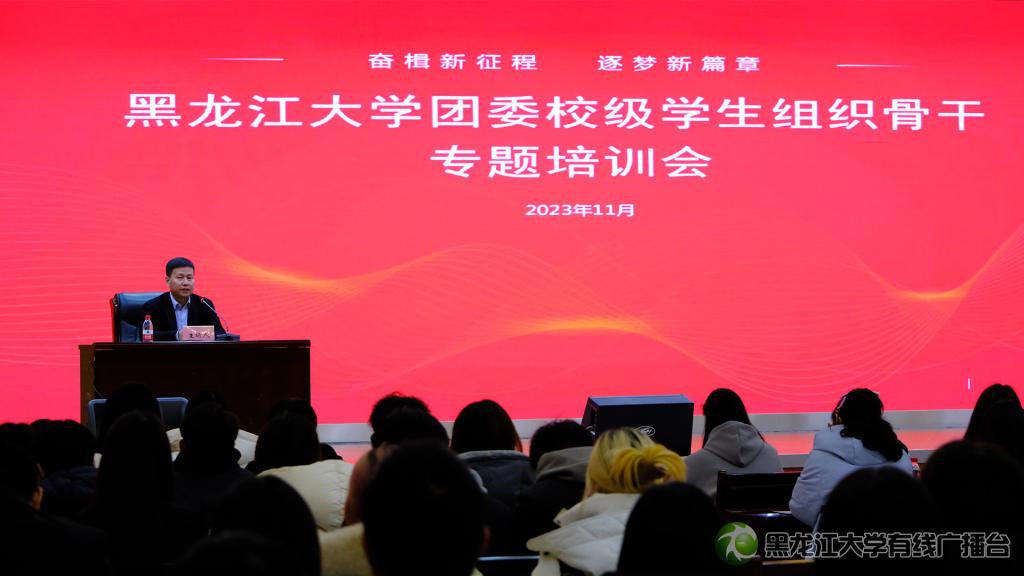 为切实履行高校基层团组织引领凝聚青年、组织动员青年、联系服务青年的职责,推动我校团属学生组织规范化建设,充分发挥学生组织骨干桥梁纽带作用,进一步引领我校团员和青年激发争先创优的内生动力,2023年11月29日下午,校团委在主楼一楼报告厅组织召开“奋楫新征程,逐梦新篇章”黑龙江大学团委校级学生组织学生骨干专题培训会。本次培训会由校团委书记李可宝主讲,校团委全体教师出席,校级学生组织学生骨干参会。