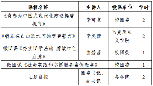 本次培训采取集中授课与各学院团委分散授课方式相结合,整体授课课时8学时。