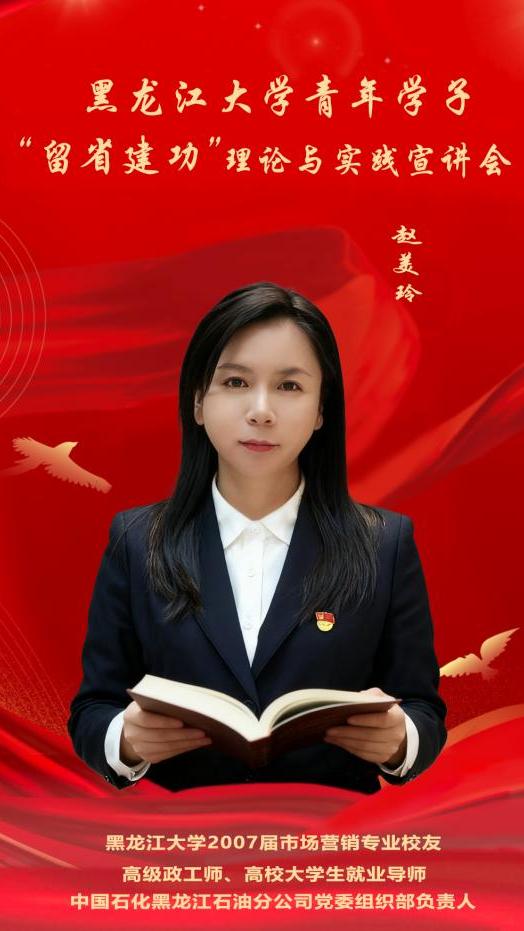 赵美玲,黑龙江大学2007届市场营销专业校友,高级政工师、高校大学生就业导师,中国石化黑龙江石油分公司党委组织部负责人。