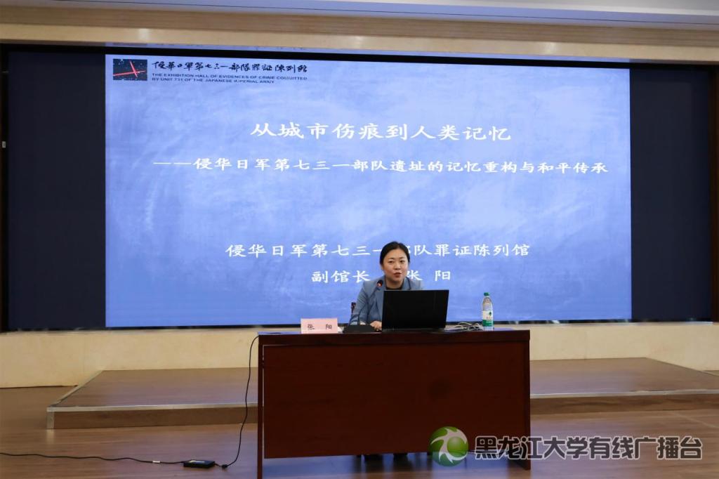 为深入学习贯彻习近平总书记在纪念中国人民抗日战争暨世界反法西斯战争胜利80周年大会上的重要讲话精神,引领广大青年学子深刻领悟抗战精神,厚植爱国主义情怀,汲取向上奋进力量,我校于9月26日下午在模拟法庭召开第十期“黑大菁英”大学生骨干培训班首讲思政“龙课”讲坛。校团委邀请侵华日军第七三一部队罪证陈列馆副馆长、副研究馆员张阳老师作题为《从城市伤痕到人类记忆——侵华日军第七三一部队遗址的记忆重构与和平传承》的专题讲座,第十期“黑大菁英”大学生骨干培训班学员参加讲座。