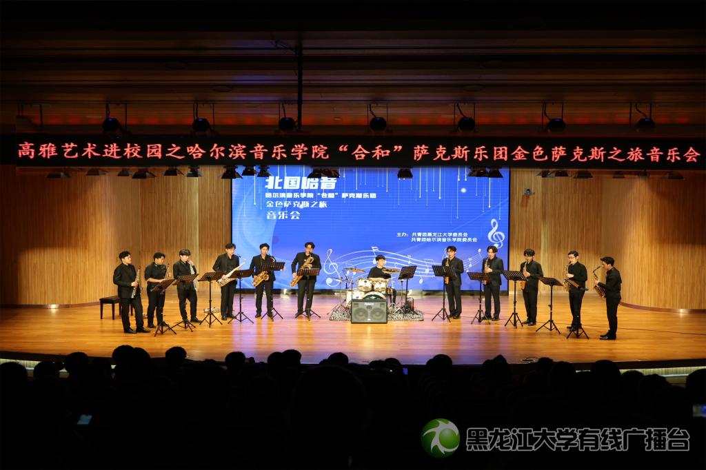 为全面加强和改进学校美育工作,切实提高学生审美和人文素养,以美育浸润学生,校团委特邀哈尔滨音乐学院于6月5日在三号楼地下报告厅举办高雅艺术进校园系列活动之北国哈音——金色萨克斯之旅专场演出。