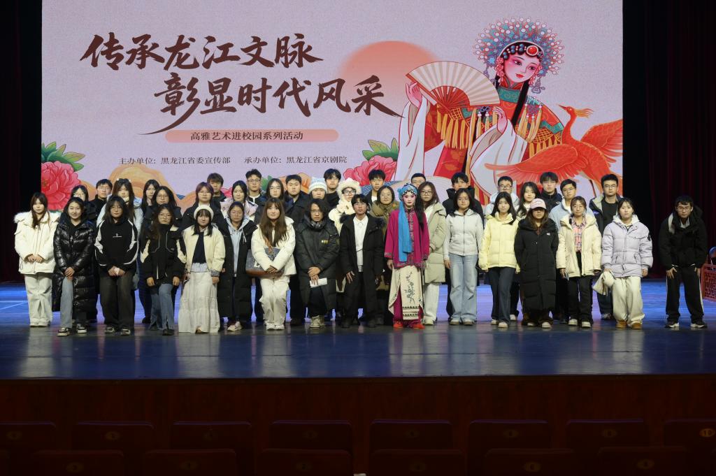 为深入贯彻落实习近平文化思想,进一步弘扬中华优秀传统文化,促进戏曲传承发展,提升我校青年学子的人文素养,以美育浸润学生,校团委于12月10日组织我校50余名学生走进黑龙江省歌舞剧院观看“传承龙江文脉彰显时代风采”高雅艺术进校园系列活动。